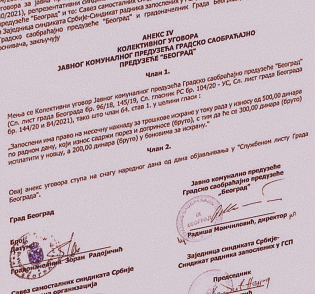 Savez ozbiljnih sindikalaca GSP-a objavio je saopštenje da su reprezentativni sindikati u Gradskom saobračajnom preduzeću Beograd pristali na smanjenje naknade za topli obrok zaposlenih i u tom smislu potpisali aneks kolektivnog ugovora sa predstavnicima grada i uprave preduzeća, koji je stupio na snagu 27. oktobra. Kao što ovaj sindikat navodi, reprezentativni sindikati su se ovim činom direktno svrstali na stranu interesa uprave, a na štetu zaposlenih u GSP-u. Pozivamo vas da poslušate razgovor koji smo vodili sa Ivanom Mihajlovićem iz Saveza ozbiljnih sindikalaca GSP-a, u izdanju našeg podcasta za 8. oktobar.