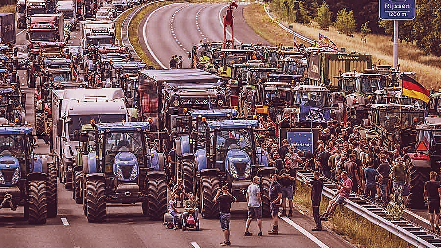Poljoprivrednici u Holandiji su organizovali proteste i blokade puteva kao odgovor na novi vladin program za smanjenje emisija gasova staklene bašte, koji je deo zelene agende Evropske unije. Ovaj program od njih zahteva da smanje broj stoke koju uzgajaju za preko 30 odsto, što bi dovelo do značajnog gubitka u njihovim prihodima i što bi mnogima onemogućilo da nastave da se bave tim poslom. Protesti su eskalirali kada su farmeri traktorima blokirali autoputeve i gađali senom kuće holandskih zvaničnika. To je dovelo do pojačanog policijskog nasilja, usled čega je policija u jednom navratu otvorila vatru na demonstrante, a donešene su i nove represivne mere kojima je policija dobila veće nadležnosti. Kao izraz solidarnosti ribari su takođe blokirali luke svojim čamcima. Holandija je jedan od najvećih izvoznika poljoprivrednih proizvoda i drastično smanjenje proizvodnje uticalo bi na snabdevanje hranom širom sveta.