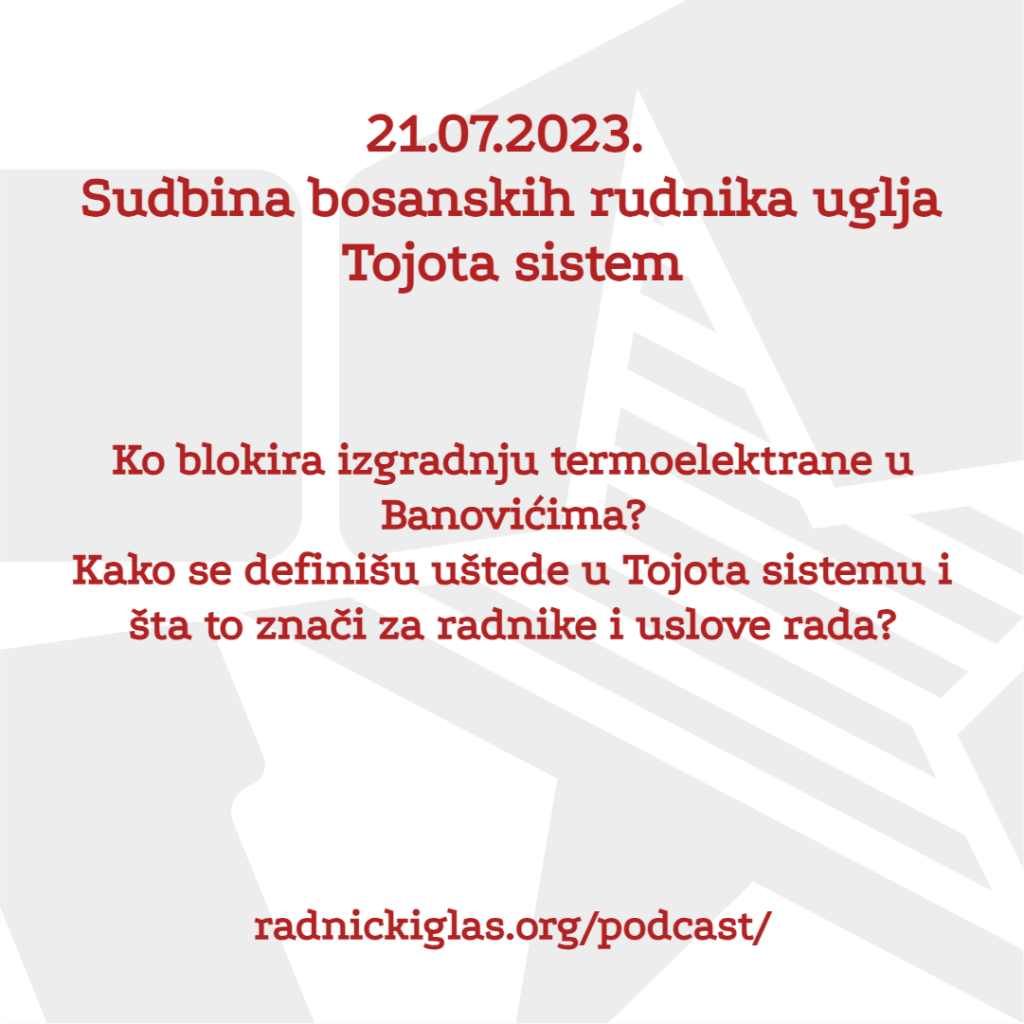U rubrici Pogon slušate razgovor sa Mehmedom Hasanovićem iz Sindikata rudnika mrkog uglja Banovići, o tome zbog čega je u interesu radnika, ali i svih žitelja BiH, da se nastavi domaća eksploatacija uglja. U rubrici Čitaonica govorimo o menadžerskom priručniku Tojota sistem Jasuhira Mondena.