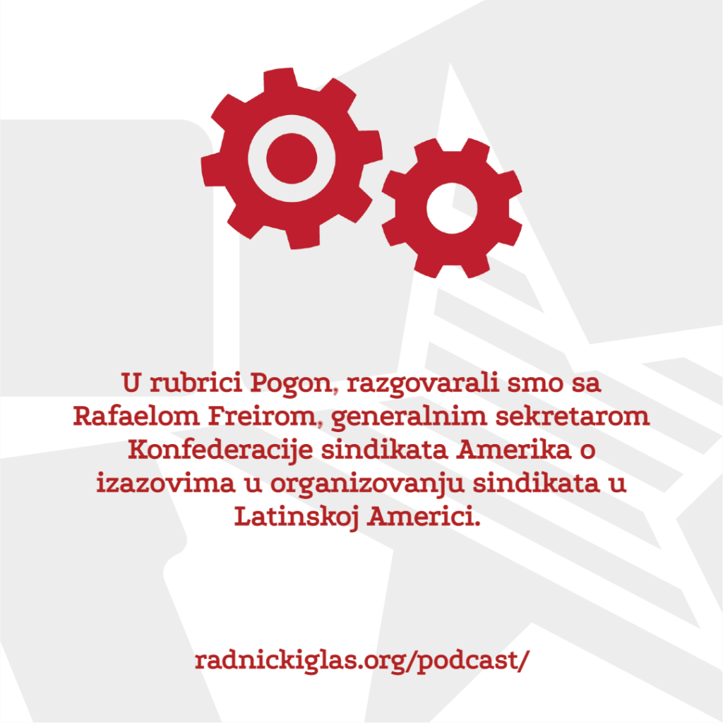 U rubrici Pogon, razgovarali smo sa Rafaelom Freirom, generalnim sekretarom Konfederacije sindikata Amerika o izazоvima u organizovanju sindikata u Latinskoj Americi. U rubrici Radionica razgovaramo o lekcijama iz nedavnog ciklusa kolektivnog pregovaranja i sindikalnih akcija radnika američke kompanije za dostavu pošiljki, transport i logistiku UPS.
