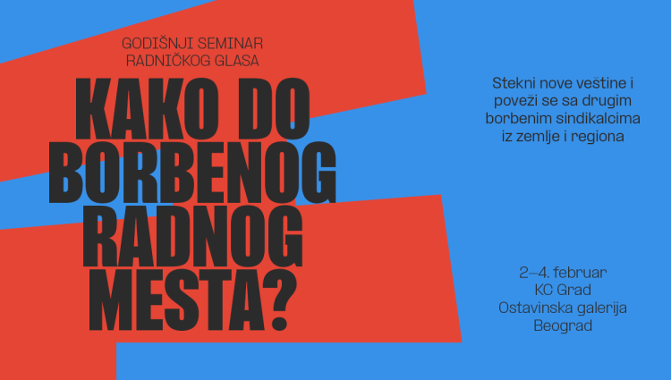 Seminar se održava u Beogadu, u Kulturnom centru Grad i KC Magacin, od 2. do 4. februara. Pohađanje seminara je besplatno, a prijave su obavezne. Radnički glas će obezbediti edukativne materijale, kao i osveženje i ručak tokom trajanja seminara.