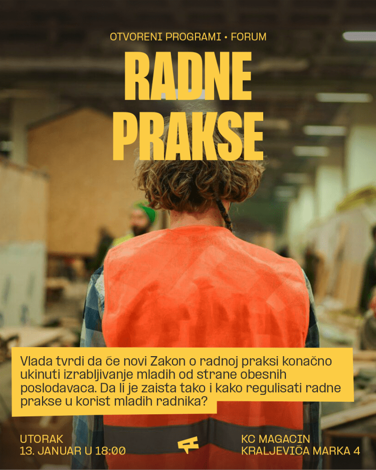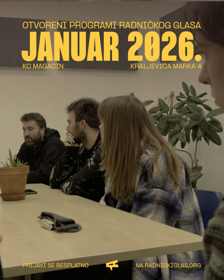 Forum Radničkog glasa je ciklus otvorenih političkih diskusija na kojima aktuelne teme sagledavamo iz perspektive interesa radnika i organizovanja na radnom mestu.