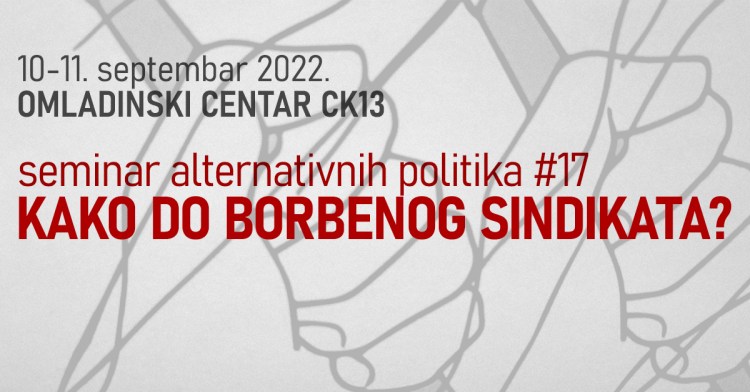 Seminar „Kako do borbenog sindikata?“ koji Radnički glas organizuje u saradnji sa CK13, ima za cilj da polaznike i polaznice nauči konkretnim veštinama sindikalnog organizovanja zasnovanog na ideji klasne borbe. Ove veštine i znanja biće korisne svakome ko želi da pokrene sindikalno organzovanje na radnom mestu, omasovi svoj sindikat, suprotstavi se poslodavcu kroz konrketne akcije i izbori se za bolje uslove rada. Takođe, svi koji žele da doprinesu jačanju radničkog organizovanja i koji veruju da je u kapitalizmu organizovanje na radnom mestu neophodno kako bismo menjali svet na bolje i u interesu većine, imaće priliku da steknu kako teorijska, tako i praktična znanja.